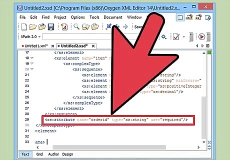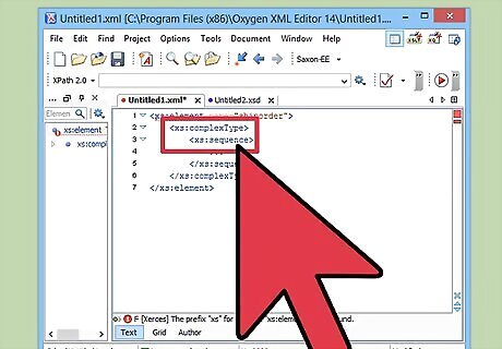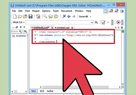 Create elements for your XML Schema. Your schema must include the schema element as its root element. This element may also contain attributes. Elements must include a start and end tag and may include other elements, text, attributes or any combination of these. The names of your XML elements must not start with a number or special character and cannot start with "xml." Ensure all elements are properly nested. Use short, descriptive names for your elements.