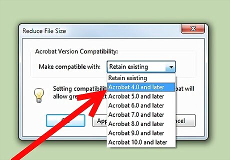 Select the oldest version of Acrobat that you would like the PDF document to be compatible with.Note: The version of Acrobat you select, will also be the version of Reader that the document will be compatible with. Also, more features will be unavailable with a lower version selected. A user with the latest version of Acrobat or Reader will not be able to use the newer features.