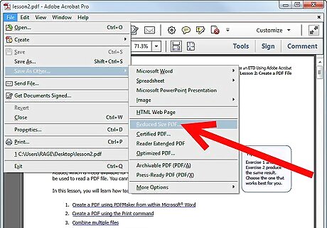 In Acrobat 6 or 7, click Reduce File Size on the File menu.The Reduce File Size dialog box is displayed.