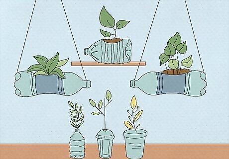 Reuse household items. Some waste is inevitable, but you can find new uses for old products. Do not throw anything away until it has been fully used. Find new uses for disposable items to reduce waste and consumption. You will also save money, which you can use towards activities that make you happy. Cut up old T-shirts to use as rags around the house. Save packing materials when you order items. You can use these next time you need to move or ship an item. It saves you from buying new plastic bubble wrap or Styrofoam. Clean empty jam jars to store other food. You can also use jars as a drinking glass, as a pot to grow herbs, or as a coin jar.