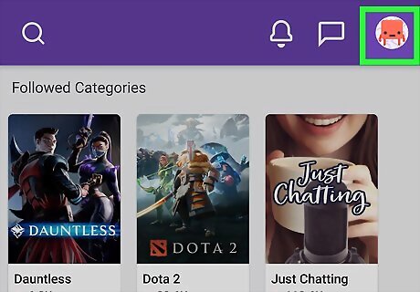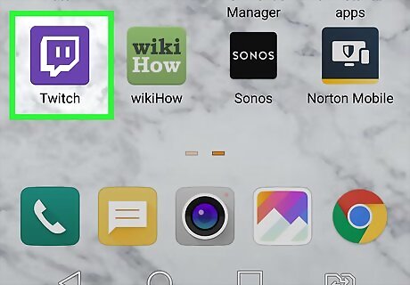 Open the Twitch app. This has a purple icon with a white word bubble in it that can be accessed from the apps drawer.
