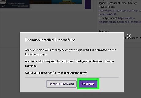 Tap Configure in the menu. This will direct you to the settings page for that extension, which will be unique for each extension. While configuring an extension, make sure to read all information listed in the configuration menu.
