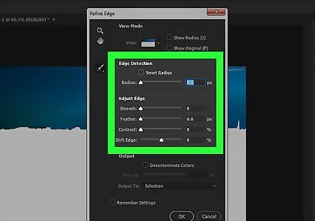 Refine the edges of your selection. You’ll find the option to Refine Edge in the Select tab in the menu you can find either along the top of your screen or the top of the application window. You’ll see your image with the image cut previewed. Refine your edges with Radius, Smooth, Feather, Contrast, and Shift Edge. Each of these options will help you define the edges of your cut, making it smoother and harder to tell something has been cut.