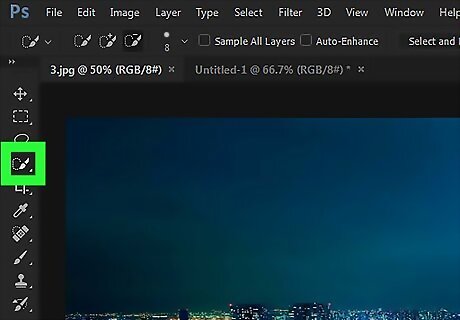 Click the Quick Selection tool. This is in the menu to the left in the application window. You can also press W. The Quick Selection tool selects all pixels that are similar in color. For example, if you’re deleting the red in a candy cane and use the Quick Selection tool in a red area, all the red in the candy cane will be selected, but the white will not.