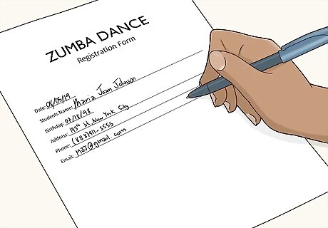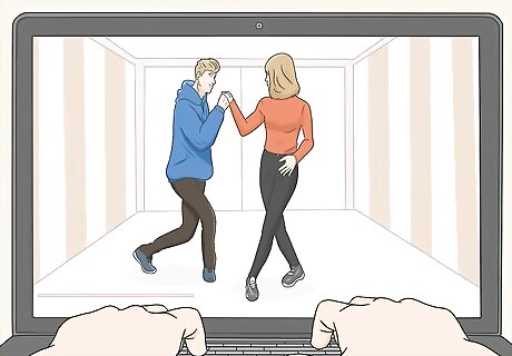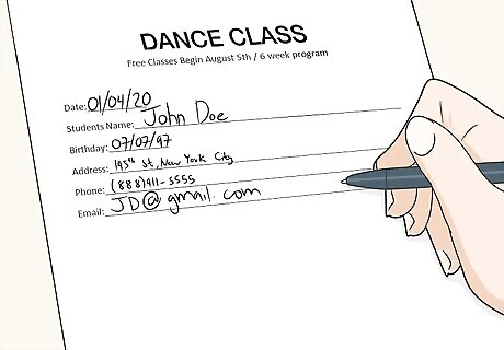 Sign up for a dance class to have an instructor lead you. Motivating yourself to dance at home can be hard. If you’d like to have the comradery of a class and the instructions of a dance teacher, find a local dance studio near you and sign up for a class or two. Some studios have dance classes that are specifically for weight loss. If you aren’t sure which class to take, call the studio and ask about classes for beginners or for weight loss. Most dance studios break their classes up by season. You may not be able to sign up for a class until the new season. A dance instructor can be especially helpful when you're learning partner dances.