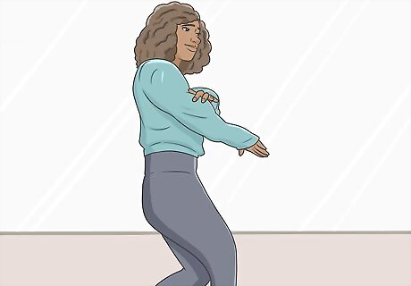Perform a few stretches before you start dancing. Depending on the style of dance you are doing, you may have to do moves that stretch your muscles. To avoid injury, stretch your legs and arms fully for about 5 minutes. Target your hamstrings, quads, and triceps to make sure you are ready to dance. If you are doing ballet, modern, or jazz dance, spend more time stretching.