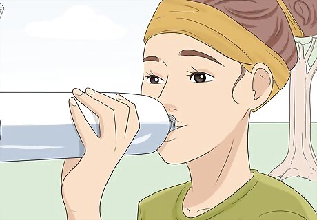 Stay hydrated to avoid muscle soreness. On days that you are dancing, be sure to drink more water than you normally would. This will help move the lactic acid through your muscles and avoid soreness. Take a water bottle with you to class or keep one near you in your home for easy access to water. Avoid dehydrating liquids like coffee and alcohol.