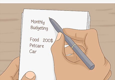 Maintain a budget. If you’re not already using a budget, now is the perfect time to create one. Your goal for a budget while unemployed is to save money and reduce your overall expenses. Create categories for your spending such as food, car, rent/mortgage, pet care, or anything else that’s pertinent. Allocate money to each category and stay within the limit you set! Creating a budget will help you prioritize where your money goes and how much you will spend on different items. For example, set up a $200 budget each month for food and start buying foods that are healthy and will fill you up. Skip the restaurants and fancy foods and focus on getting your basic needs met.