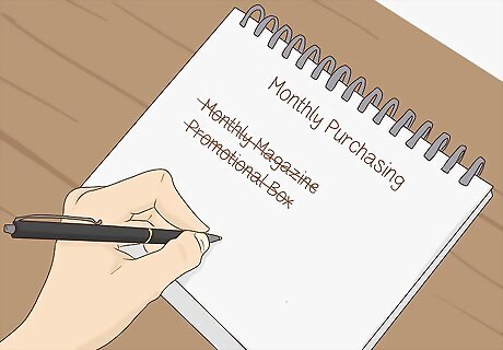 Stop unnecessary purchases. Losing a job often means a drastic cut in income or no source of income at all. Cut back on any unnecessary spending. For example, if you subscribe to a monthly magazine or promotional box, cancel it. If you eat out for most meals, consider cooking at home. These are simple ways to cut spending that can help you with financial stability. Find ways that you can cut spending without having to make drastic changes. For example, limit your online shopping. Make a list of your monthly expenses and determine if there are some you can eliminate or decrease. For example, some cable companies will allow you to decrease your monthly plan to a very basic plan for a lot less money for up to 6 months at a time.