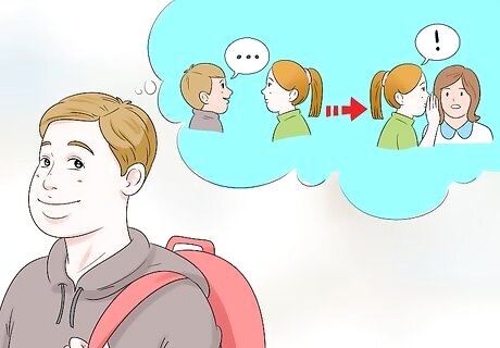 Be mindful of what you say and who you say it to. It is easy for word to spread through school, so leave private conversations for your most trusted friends. This prevents miscommunication and avoids others twisting around your words. For example, don’t tell the girl whose locker is next to yours that you don’t like John. That will only give her something to start telling others about.