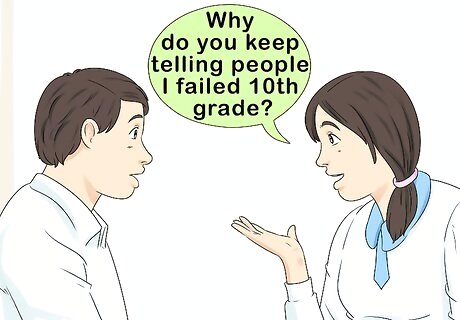 Ask to talk about the situation next time someone starts drama. You can approach the drama-spreader and kindly ask if you can talk about the rumors, or you can ask after they tease you next. Say something like, "Hey, Tommy. Why do you keep telling people I failed 10th grade?" It is better to discuss things rather than letting the drama fester. Oftentimes it doesn’t go away, it only gets worse. Be confident in yourself when you ask. Drama queens and kings are less likely to mess with you if you are confident in yourself.