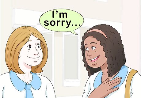 Apologize for any drama you may have contributed. Consider if you have played a role in the drama. Do you have drama with the band kids and the football team? Maybe you are part of the problem. Apologize to either the individual or group involved in the drama to diffuse any tension and wipe the slate clean. Think about any time you have said mean things about others or started rumors. It’s okay that it happened, but make sure you take responsibility and move on. You can say something like, “Hey, Anne. I’m sorry we got into that fight last week. I didn’t mean to hurt your feelings.”
