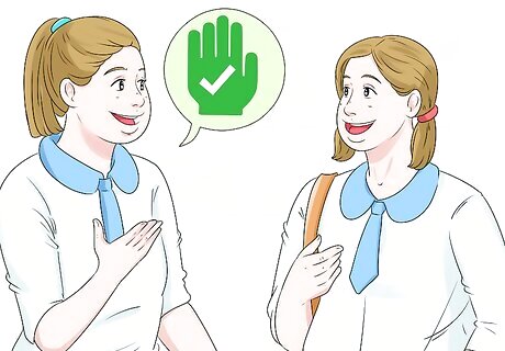 Recruit your friends for backup by informing them of the issue. Tell your pals about your problem. Mention how long the drama has lasted, who is involved, and what you think started it. They can offer a buffer between you and those involved, and they can help cheer you up. Say something like, “Hey Jared, Melissa keeps saying mean things about me to Kelsey and Veronica. I’ve tried asking Melissa to work, but she keeps yapping. Can you mention it to her next time you hang out?”