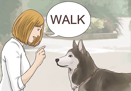 Make the exercise fun. Let your dog know before heading out to play or go for a walk. For instance, say “Walk?” repeatedly to your dog in an excited voice before heading out for a walk. Pet your dog lovingly as you say it. Over time, your dog will come to associate this word and the subsequent walk with the good feelings it has due to being paid attention and petted. After your walk is finished, pet your dog several more times and say “Good boy/girl” affectionately.