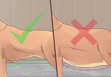 Keep your dog lean. If your dog is too fat, it will have trouble moving and experience inflammation of the joints, which limits mobility in mornings. Carrying around a lot of extra pounds is hard on the skeleton and joints. Plus, obesity in dogs (as in people) also leaves them open to a host of other maladies, including diabetes, heart disease, and high blood pressure. Overweight dogs will suffer from stiffness. But your dog should also not be too skinny. The ideal dog weight is one in which you can feel the ribs, but they are not poking out. Your dog’s abdomen should appear tucked – not hanging – when viewed from the side.