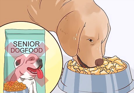 Don’t assume a senior dog food is best for your dog. Most dog food manufacturers offer dog foods designed specifically with older dogs in mind. These dog foods might have lower calorie counts per serving, or have increased levels of fiber. But these dog foods are not necessarily what your dog needs. If your dog remains active into its golden years, it might need a regular, higher-calorie dog food. Ask your vet about recommendations regarding its diet.