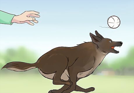 Play with your dog. Games and play are great for keeping your elderly dog active. For instance, toss your dog’s favorite toy or ball across the room. Better yet, head outside to a space where your dog has lots of space to run about. After tossing the toy, encourage your dog to bring it back to you. Repeat several times until your dog is tired. This simple game will improve your dog’s circulation and flexibility, leading to less morning stiffness. Playing with your dog is good for its mental and emotional health.