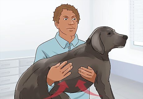 Give your dog a helping hand. If your dog needs help jumping up on furniture or on the bed in the morning because it is too stiff, help your dog up. Lift your dog gently by cupping it beneath its “armpits” – the spot where its front legs and body meet. You might also place a low stepping stool in front of couches or bed in order to enable your dog to climb onto them itself. Always be gentle with your dog and respond to any signals it gives that you’re pulling too hard. If your dog yelps or cries out, don’t insist on pulling your dog up onto furniture.
