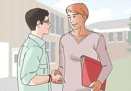 Find allies at school. Check to see if your school has an LGBTQ club or GSA (Gay Straight Alliance). Join it! Make as many LGBT friends as you can—they can help you through the worst times. Look for after school programs that include LGBT students. Try out for theater, choir, and other arts activities. See if any of the sports teams have openly gay or transgender members. Ask your friends to walk with you if you are being physically harassed in the halls, and do the same for them. If your school employs proctors, campus police officers, or other security, make friends with them. Let them know if anyone is bothering you, so that they know to keep an eye out for that.