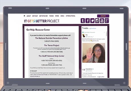 Find a mental health professional you really like. While there are many joys to embracing your full identity, there are also many stressors. Talk to a mental health professional to ease your passage, especially if you are coping with rejection and hostility at home, school, or work. If you are transgender, you will need the sign-off of a therapist to work with some surgeons, especially if you are underage. Get a therapist who works with LGBT people: http://locator.apa.org/ Call a support or suicide hotline if you are feeling despair or having suicidal thoughts: http://www.itgetsbetter.org/pages/get-help/