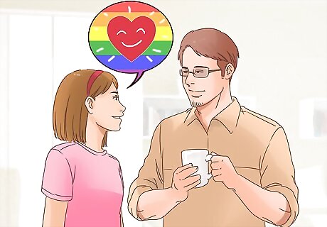 Talk about your joy. Your family might think that being LGBT means you are doomed to be friendless, loveless, childless, and physically endangered. This is obviously not true, but it's a fear that many parents have. Show them the things that bring you joy about your gender and orientation. You might tell them about the great friends you have made through LGBT groups, mention caring things your partner has done for you, and otherwise share the joys of your life. If you are younger, the joys of being LGBT might feel far away. You can show your joy by showing your parents the ordinary pleasure of your life: pleasure in your friends, interest in school, a love of sports or the arts.