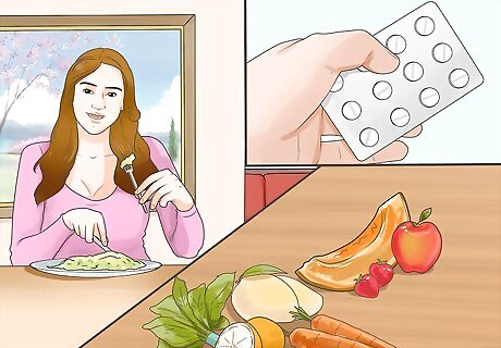 Eat a healthy diet. Your daily vitamins can be best absorbed when found in your daily food intake. Before taking a multivitamin, consider your daily food intake. Make sure you're eating 5 portions of fruit and vegetable per day. Get plenty of fiber by including beans and legumes; nuts and seeds; oats and whole grains; and unprocessed fruits and vegetables. Increase the amount of by potassium you take in by including the following within your daily diet: beans and legumes; potatoes; low-fat milk and yogurt; lower-sodium canned tomato products; fruits; and lamb, pork, and fish. Include high-calcium foods in your diet, such as milk, cheese, and yogurt; calcium-fortified, plant-based milks; orange juice; cereals; tofu (prepared with calcium citrate); and almonds.