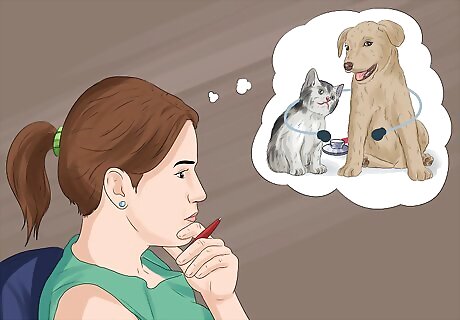 Consider sharing custody. While pets tend to thrive in consistent environments with predictable schedules, if both you and your spouse agree that you can maintain a stable environment for the pet, you can set up a custody agreement. For the sake of the pet, it may be best not to exchange the pet on a weekly basis but rather a monthly or bi-monthly basis. If one person works from home, they may be better suited for custody during the week versus a spouse who has more time on the weekends. You should decide in advance who will be responsible for pet-related expenses, particularly for emergency or veterinary care. You should also consider that certain pets, like cats, thrive in familiar environments and may not be well suited for shared custody.