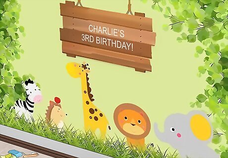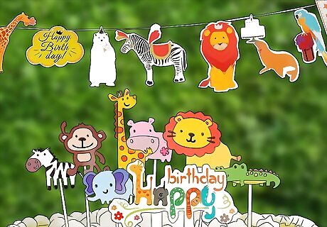 Display jungle decorations for a kid’s birthday party if they love animals. Animals are incredibly popular with kids making them a great choice for decorations. Choose decorations that have animal patterns, such as leopard or tiger print. Decorate the cake with a picture of an animal. A safari party or a zoo party are also great animal themes. Place plants in hanging baskets to create a jungle feeling.