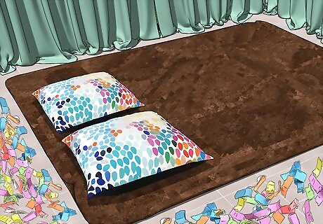 Place blankets and pillows on the ground to create a picnic look. Picnic style seating is a popular and trendy look. Ask guests to bring a picnic blanket or use your own blankets. Even if the party is inside, this can still create a fun, picnic atmosphere. Place pillows on the blankets and around coffee tables to help encourage people to sit down. Avoid using your favourite pillows in case they get food on them. This isn’t the best option if you’re hosting a formal party. However, if you’re hosting a casual gathering, this idea will work a treat.