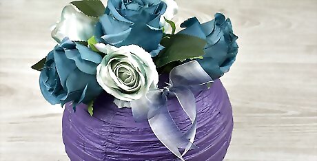 Put fake flowers inside your paper lantern. Buy some matching silk flowers and ribbon that you like from a local craft store. Flip your lantern upside down and tie your ribbon into a bow around the base of the opening. Then, fill the lantern with your silk flowers and display the lantern on a flat surface.