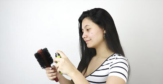 Use anti-static spray. You can buy an anti-static spray at your local pharmacy or hair salon. Don’t overdo it with the spray – a quick once-over of your hair should do the trick. Try to only spray in the troublesome spots. This will help to defrizz your hair immediately.