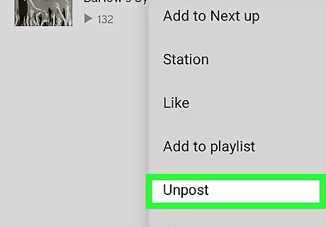 Tap Unpost. It's the second to the last option in the pop-up menu. This deletes the repost.