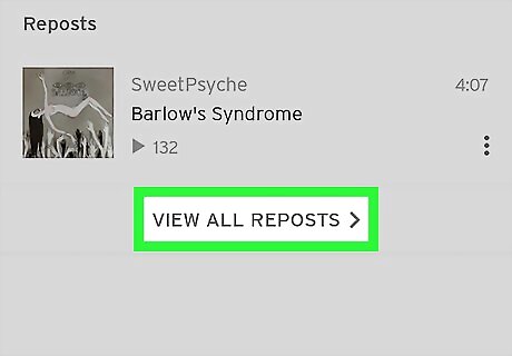 Scroll down and tap View All Reposts 〉. It's at the bottom of the "Reposts" box. This displays a complete list of all your SoundCloud reposts.