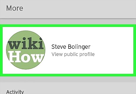 Tap your profile image or name. It's at the top of the "More" menu. This displays your public profile.