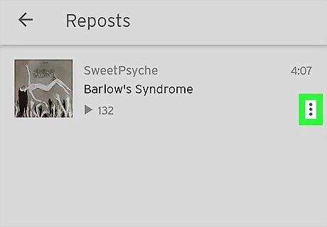 Tap ⋮ next to a repost. The icon with three vertical dots is to the right of all reposts in the list. Tap this icon next to a repost that you want to delete. This displays a pop-up menu next to the repost.
