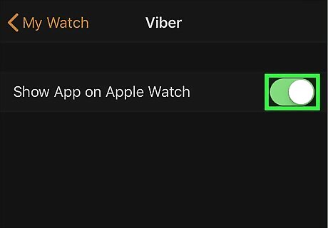 Tap the green "Show App on Apple Watch" switch iPhone Switch On Icon. This switch is at the top of the screen. It will turn white iPhone Switch Off Icon. The app will be uninstalled from your Apple Watch. You can place the app back on your Apple Watch at any time by tapping the white "Show App on Apple Watch" switch.