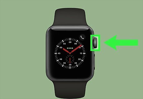 Unlock your Apple Watch. Press the Digital Crown—which is the dial on the right side of the Apple Watch's housing—then enter your passcode and press the Digital Crown again. This should bring up a group of your current apps' icons. If doing this opens an app instead of the app group, press the Digital Crown one more time. If you're currently wearing your Apple Watch, you won't need to enter your passcode. If your Apple Watch is already unlocked but the screen is off, raising your wrist will prompt the display to open.