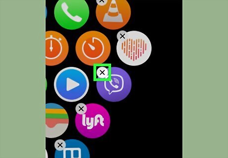 Tap X. It's in the top-left corner of the app's icon. If your Apple Watch uses the "List View" setting for your apps, tap the trash can-shaped icon to the right of the app's name.