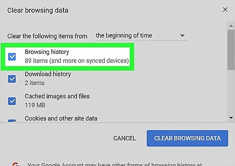 Check Browsing History. Doing so ensures that your browsing history will be erased.