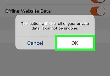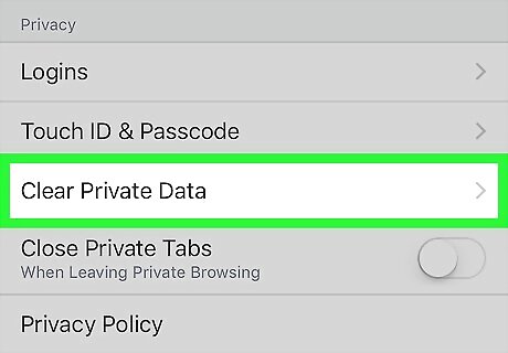 Scroll down and tap Clear Private Data. This option is near the bottom of the page.