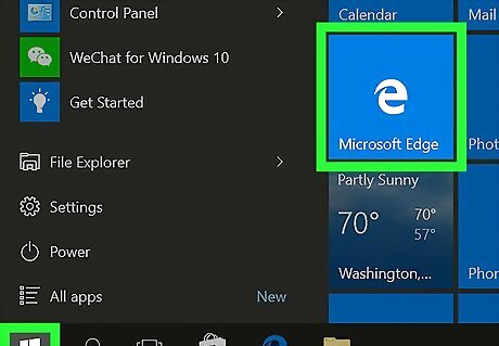 Open Microsoft Edge. It's a dark-blue "e" icon.