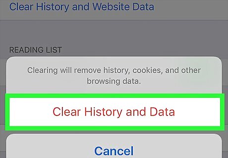 Tap Clear History and Data when prompted. Doing so will clear your mobile device's Safari browsing history.