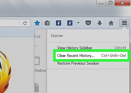 Click Clear Recent History…. This option is at the top of the History menu. Doing so opens a window.