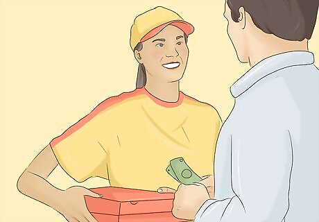 Deliver the pizza. Hold the heat bag by its bottom and keep it level. Greet the customer with a smile when they answer the door. Be patient with them, even if they’re slow in paying, impatient with you, or otherwise less than ideal. Be sure to give them the correct change if needed so they don’t feel slighted. Always keep an upbeat attitude, even if you’re having a bad night. Remember that you’re the face of your store, and acting out of sorts or impatient will dissuade the customer from ordering again or giving you a big tip. Some delivery people adopt the practice of rounding the total charge up to the nearest dollar to avoid the need for coins. Some customers may be fine with this, but others may take offense. If that’s the case, treat it like you made an innocent mistake and give them a simple apology, like, “You’re right! My bad. The exact charge is $17.60.”