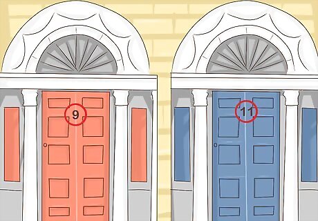 Find the right address. This can be a challenge, especially in the dark. Remember that odd-numbered buildings are usually on one side of the street, and even-numbered houses on the other. If you don’t find the one you’re looking for right away, use the ones that are easily read as reference points. For example, if you’re looking for 407 but can only see 411, then 407 is probably two buildings down. Depending on the neighborhood (how far apart the buildings are, how much parking is available), it may be quicker to park right away and find the right address on foot, as long as you’re sure you’re on the right block.