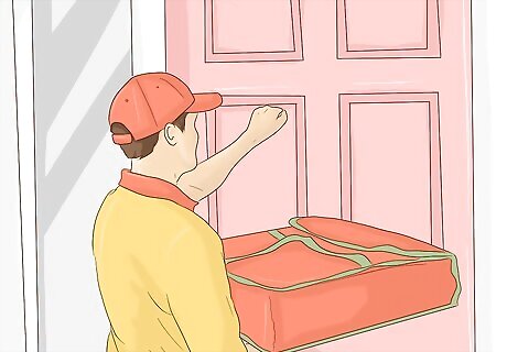 Hustle to the door. Assume that the customer is watching you as soon as you pull up outside. Don’t dawdle. Show them that you’re trying to get their pizza to them while it’s hot by moving quickly. At the same time: Don’t rush so much that you can’t handle the load safely. Remember to keep the heat bags level at all times. Avoid dropping or tilting their food so it doesn’t slosh around and look like a mess when it finally gets there.