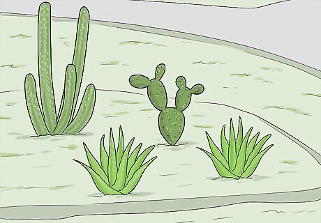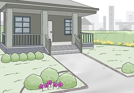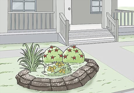 Skip plants altogether and use stones for a more modern look. If you live in a modern building or don’t have much yard space, feel free to skip greenery altogether. You can hire a contractor to install a pattern of stones or load your front yard with gravel. This is also a great choice if you don’t want to worry about maintaining plants or live somewhere with extreme shifts in temperature that tend to destroy a lot plants. This is a great option if you live in a city and don’t have an enclosed yard, since you won’t need to worry about strangers trampling all over your greenery. Skipping plants is also a great choice if you live in an arid climate that doesn’t get much rain.