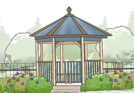 Keep gazebos and sheds in your backyard if you can. For really big structures that take up a lot of space, opt to place them in your backyard. The front yard is the public’s first impression of your home, and a large shed or gazebo will obscure a large portion of your home from the street. If you need storage space for gardening materials, set up a small storage box on the side of your home.