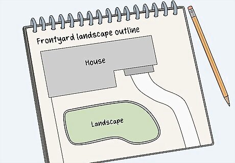 Create a basic outline of the shape of your yard. To start, grab a sheet of paper and draw a basic outline of your yard. You can measure the dimensions of your yard and use graph paper to create a scale drawing, but this isn’t necessary for preliminary sketches. This process is more about choosing locations and shapes than placing structures and plants in specific locations.Tip: Design companies typically perform this service for you, but you should sketch your desired layout even if you aren’t doing the work yourself. It will be helpful to refer to your illustration when you’re trying to explain what you want to the contractors. Do this on a sheet of paper larger than 9 by 11 inches (23 by 28 cm) to give yourself plenty of room to work. Keep it smaller than 36 by 42 inches (91 by 107 cm) though, since too much space will make it hard to keep your drawing consistent.