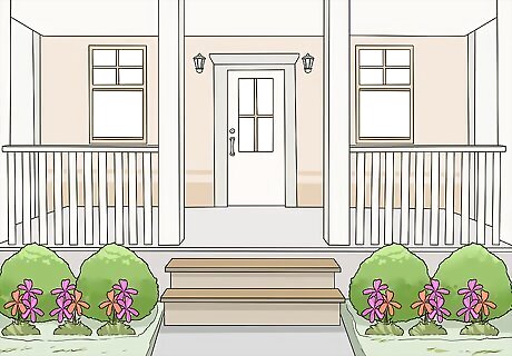 Keep your windows and doors clear of obstructions. Natural light goes a long way when it comes to creating good vibes in your home. Avoid blocking windows with tall shrubs or plants to ensure that your windows stay clear. Keep wild plants and furniture 3–5 feet (0.91–1.52 m) away from the sides of your door to avoid blocking it. Restricting the door will make it hard for people to identify the focal point of your yard.Tip: When looking at a building, most people naturally look at the door before inspecting any other elements in your yard. Designing the rest of your yard around your door is a great way to guide design decisions if you aren’t sure what you’re looking for in a front yard.
